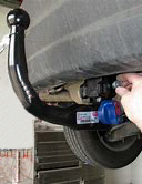 Towbar installation on a later model vehicle whilst on the hydraulic platform.